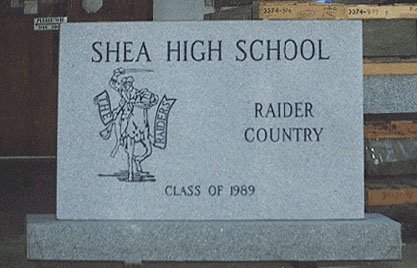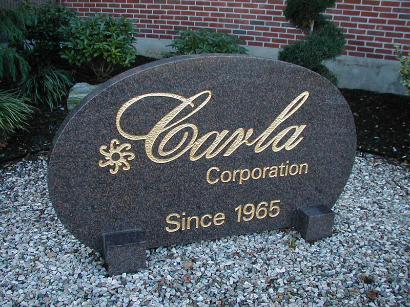 Polished granite signs can greatly enhance your company's image. Our design staff will work with you to develop custom logos, type and graphics that will make your sign eye catching and compelling. And the best part about these signs is that they stand up much better to the elements and time than other types of signs on the market. We can carve any designs on any color granite. Click on any image for a larger view. |
