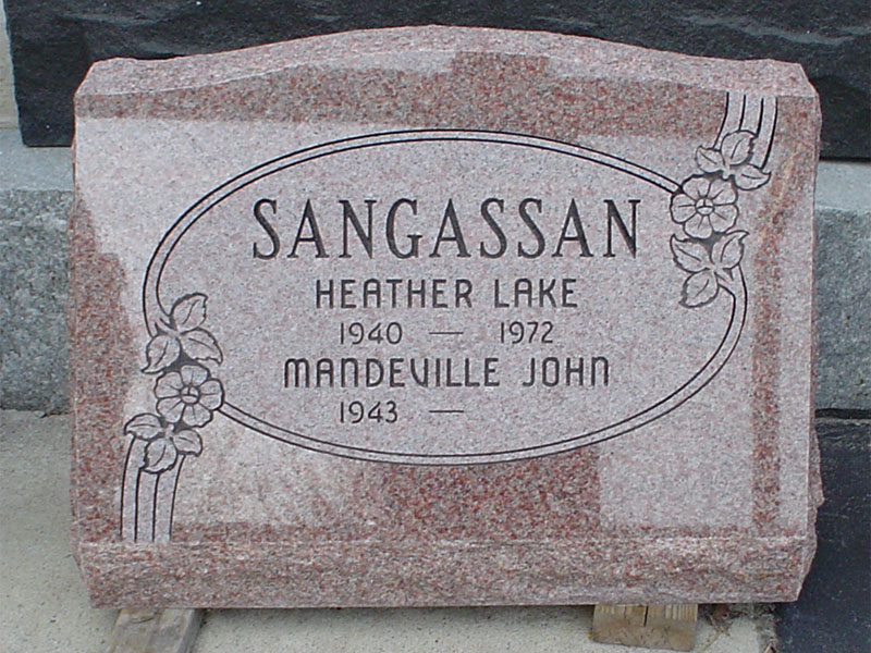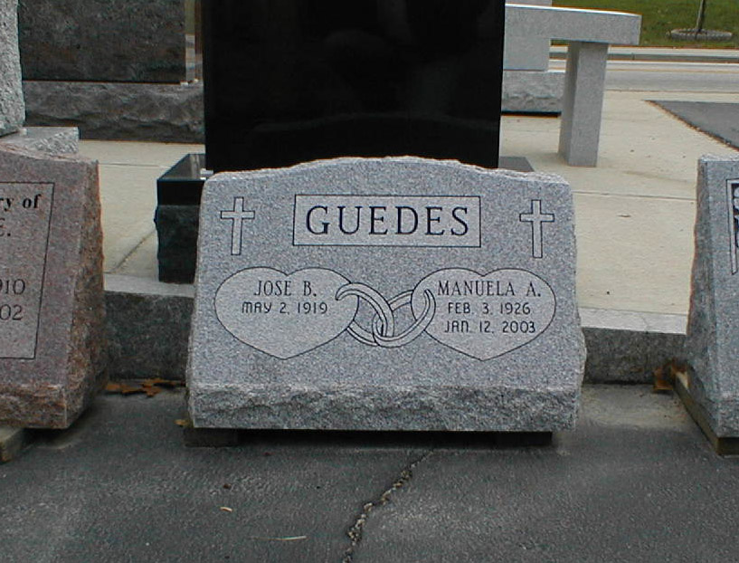 Slant Markers are upright memorials that are wide at the bottom (10" thick) gradually narrowing to 3" at the top. This style memorial can be set directly on a cement foundation or you can purchase a granite base separately. The most common individual size is 2' in length, 10" wide at bottom and 1'6" in height. Companion size: 3' long, 10" wide and 1'6" in height. Please note: Some dealers sell slants that are 14" tall, all our slants are 18" tall. Bevel Markers are typically 6 or 8" thick at the back with a 2" taper to the front. The most common individual size is 2' in length by 1' by 6". The most common companion size is 3' by 1' by 6". Marker designs can be flat sandblasted, or laser etched . Check with the cemetery regarding their rules and restrictions about size and content. We can carve most approved lettering, designs on any color slant or bevel. All our marker quotes include design, large family name, given names and sets of dates. Click on any image for a larger view. |